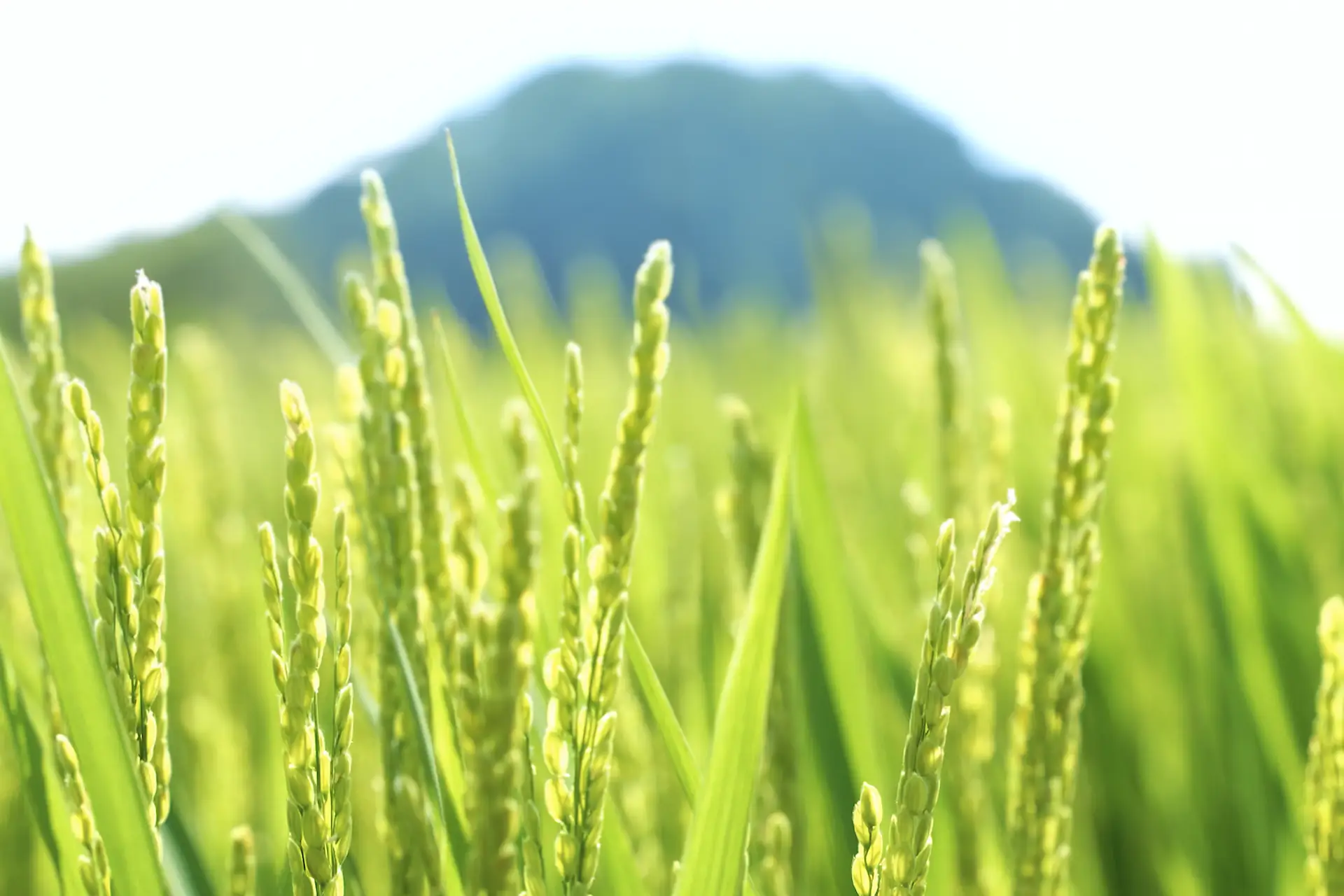 Closeup of rice growing in a paddy